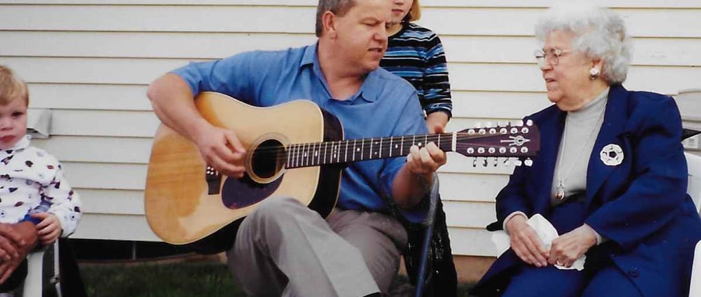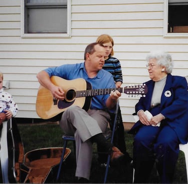 This project started a long time ago when Peg, Mom, Mom-Mom turned 70 years old. I had been writing more songs in the 80's and many of them were melodies that had been hanging around in my head for years until I began to combine them with scripture. Seeing how God knitted those melodies together with His Word was very encouraging to me and as Mom's 70 birthday approached I asked God for His inspiration again to write a song for Mom. Little did I know THAT would be The Beginning of THIS PROJECT which has given my life so much meaning and fulfillment. A totally unique creative process took a hold over me one day and within about 15 minutes from start to finish, MOM's SONG was written. I was writing, singing and writing so fast I felt an inspiration that has never been repeated. The lyrics on the paper were just jumping out at me, never needing to scratch out any correctlons or adjustments; just ONE continuous flow of thoughts and memories that seemed to capture SO MUCH of what our family was about . . . what Mom was about.